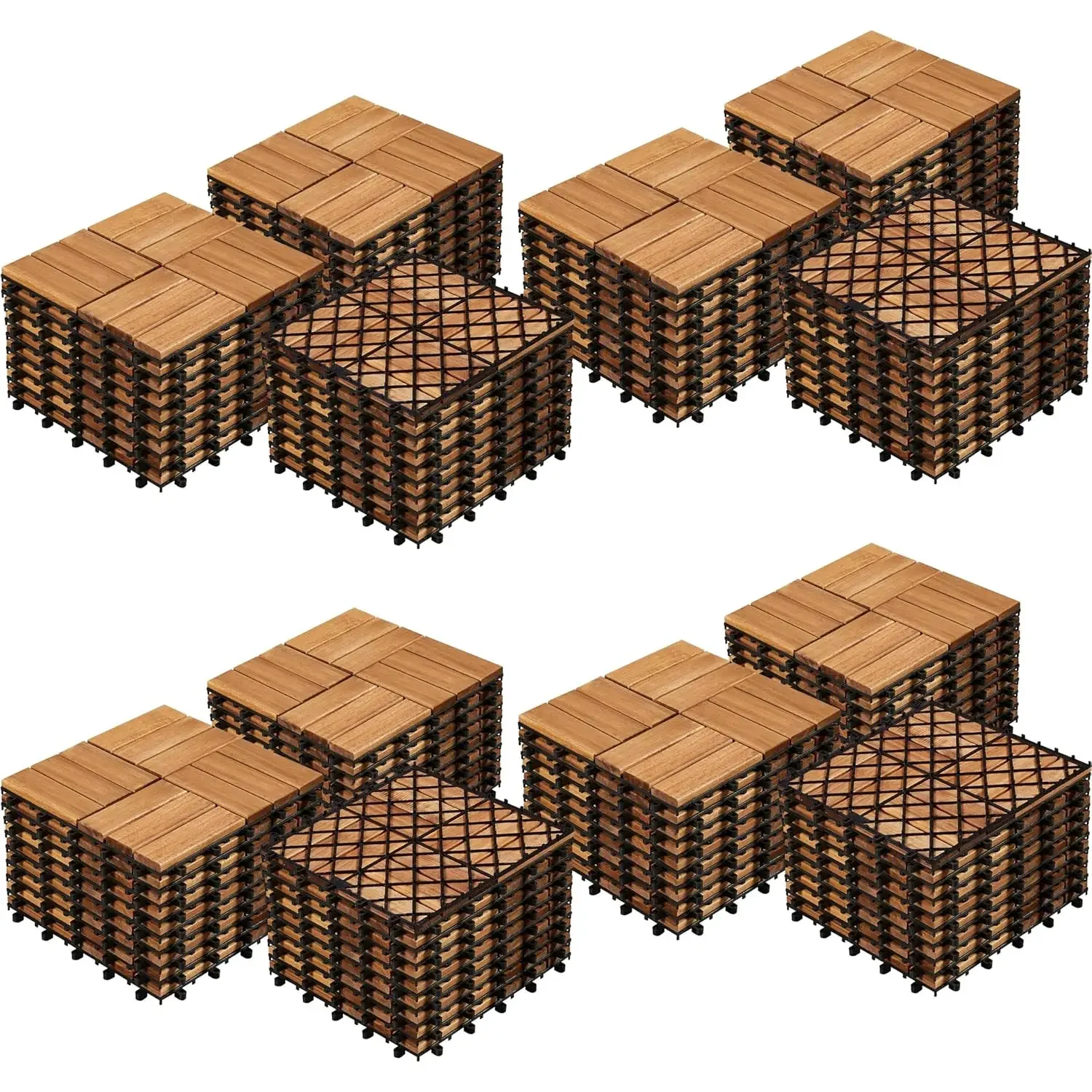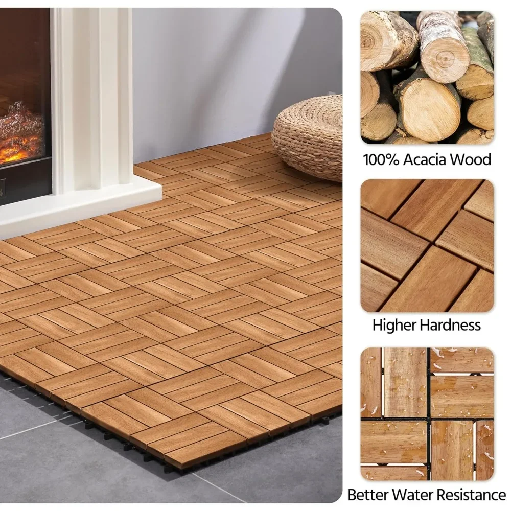 108pcs Hardwood Interlocking Patio Deck Tiles Acacia Waterproof Wood Flooring Tiles for Patio Garden Poolside, 12” x12”