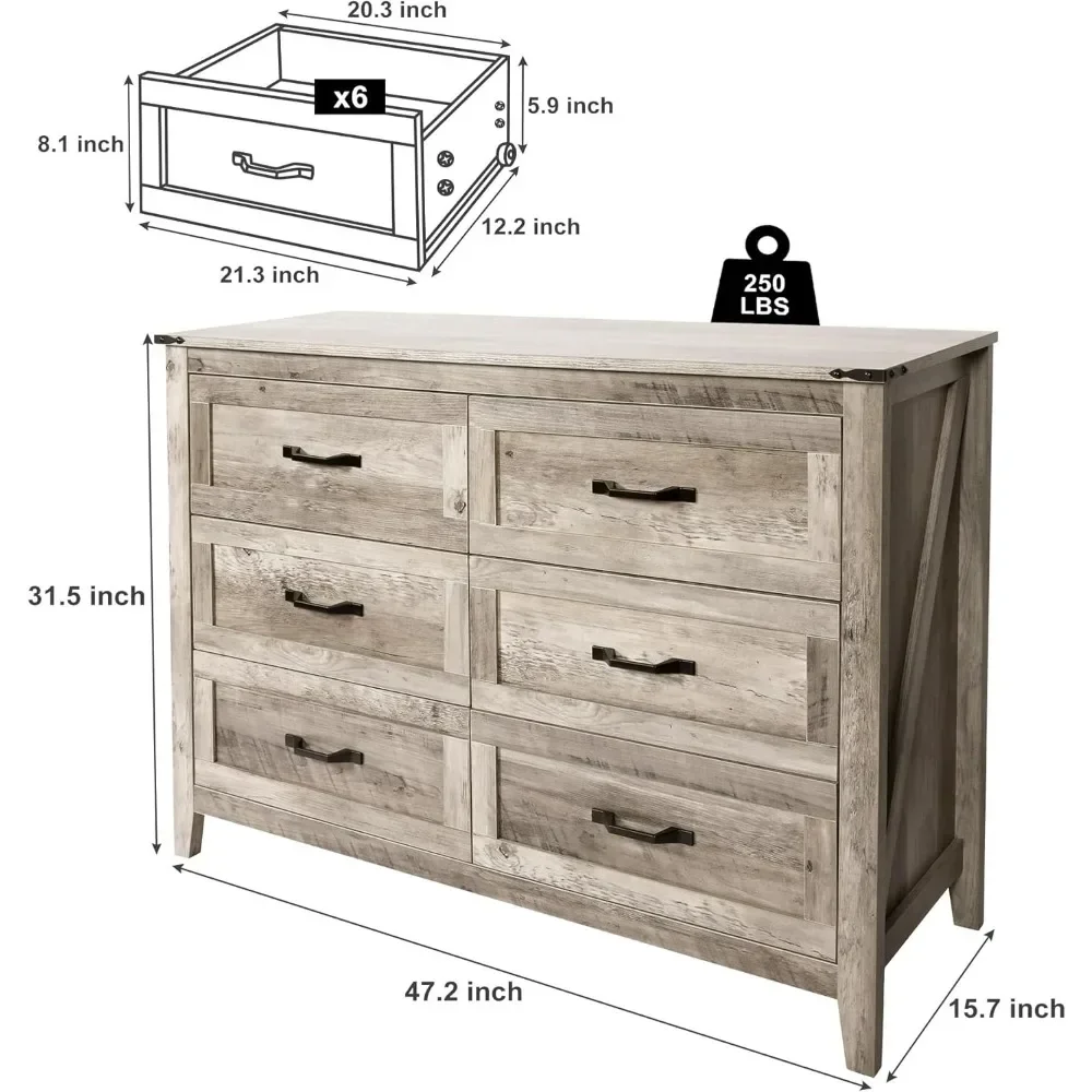 – The rustic 6-drawer chest is the perfect storage solution for your home. With its five wide and deep drawers, this dresser offers exceptional space to accommodate all your belongings. From clothes and toys to skincare products and towels, you’ll have ample room to keep everything organized and easily accessible.