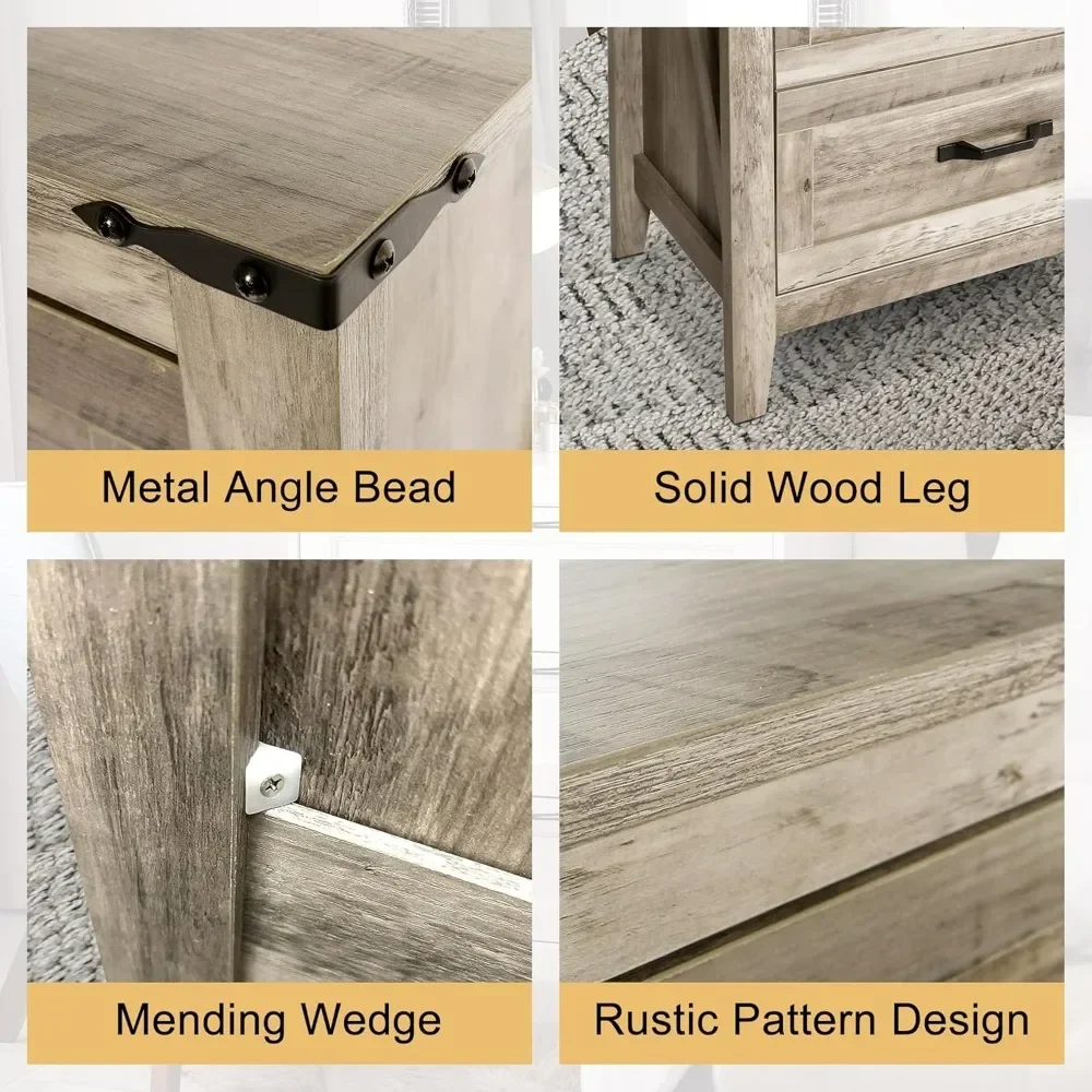 – Blending the classic beauty of wood with the durability and hassle-free maintenance of modern materials, this wooden dresser features an imitation wood grain design. The realistic and stylish appearance of the wood grain complements the vintage farmhouse style perfectly. It brings a warm and inviting ambiance to the room.