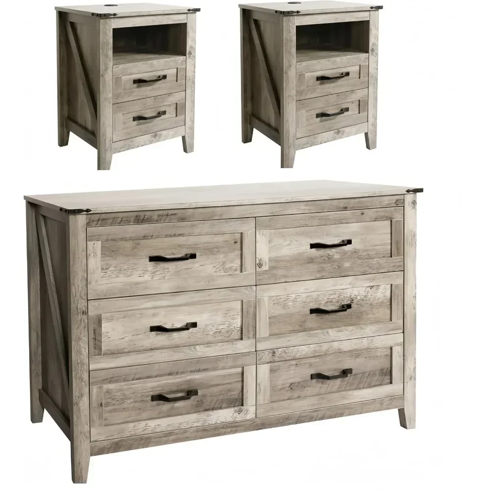 – This 3-piece wooden bedroom furniture set contains: one 6 -drawer dresser and 2-drawer nightstand set of 2 to meet your storage needs for different functions and spaces. Bring a unified farmhouse style to your room!