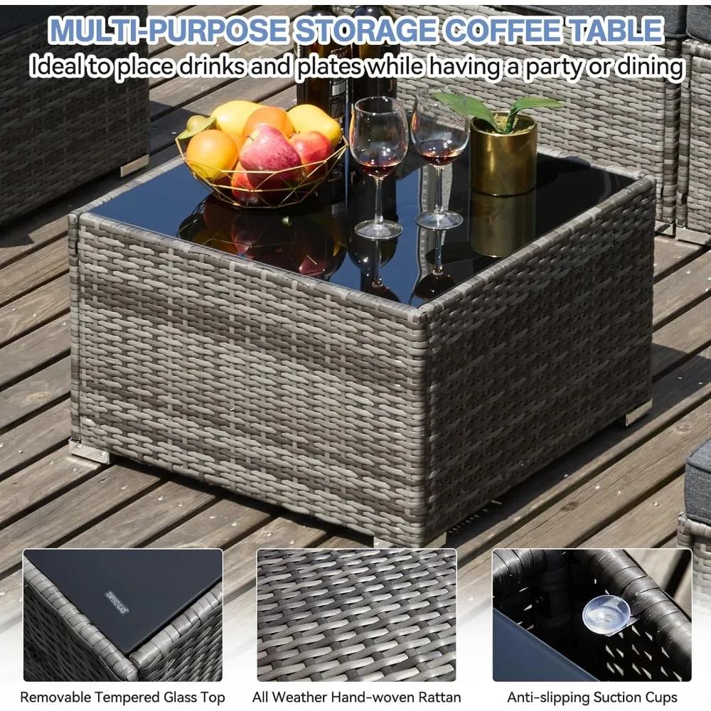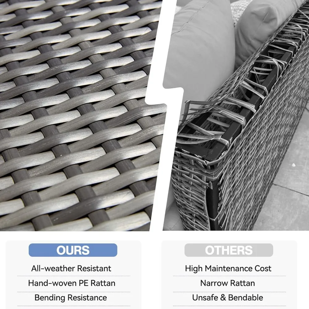 - 【Eco-Friendly Rattan and Unique Brushed Finish of Gray Rattan】Each piece in our 7 pieces Outdoor Sectional Furniture is meticulously handwoven by skilled artisans with over 10 years of experience, ensuring quality and craftsmanship.The gray rattan wicker patio furniture features a unique brushed finish, meticulously crafted by skilled workers using handcrafted brushing techniques. This brushed finish exudes a casual and relaxed style, perfect for weekend family party,hosting friends..