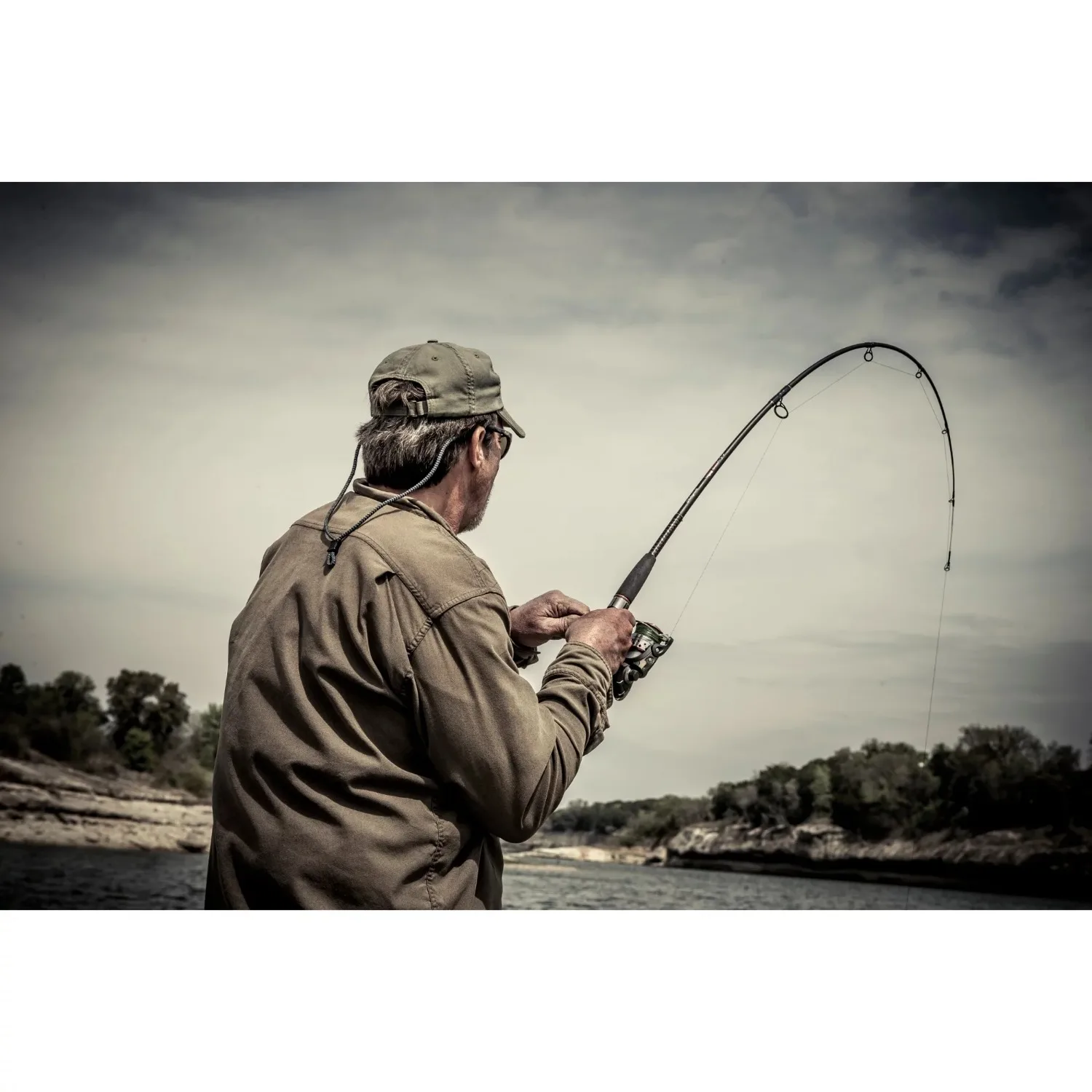 - UGLY TECH CONSTRUCTION: 2-piece, Ugly Tech construction combines graphite and fiberglass, for a strong, yet sensitive rod. Features on/off bait clicker and double paddle aluminum handles.