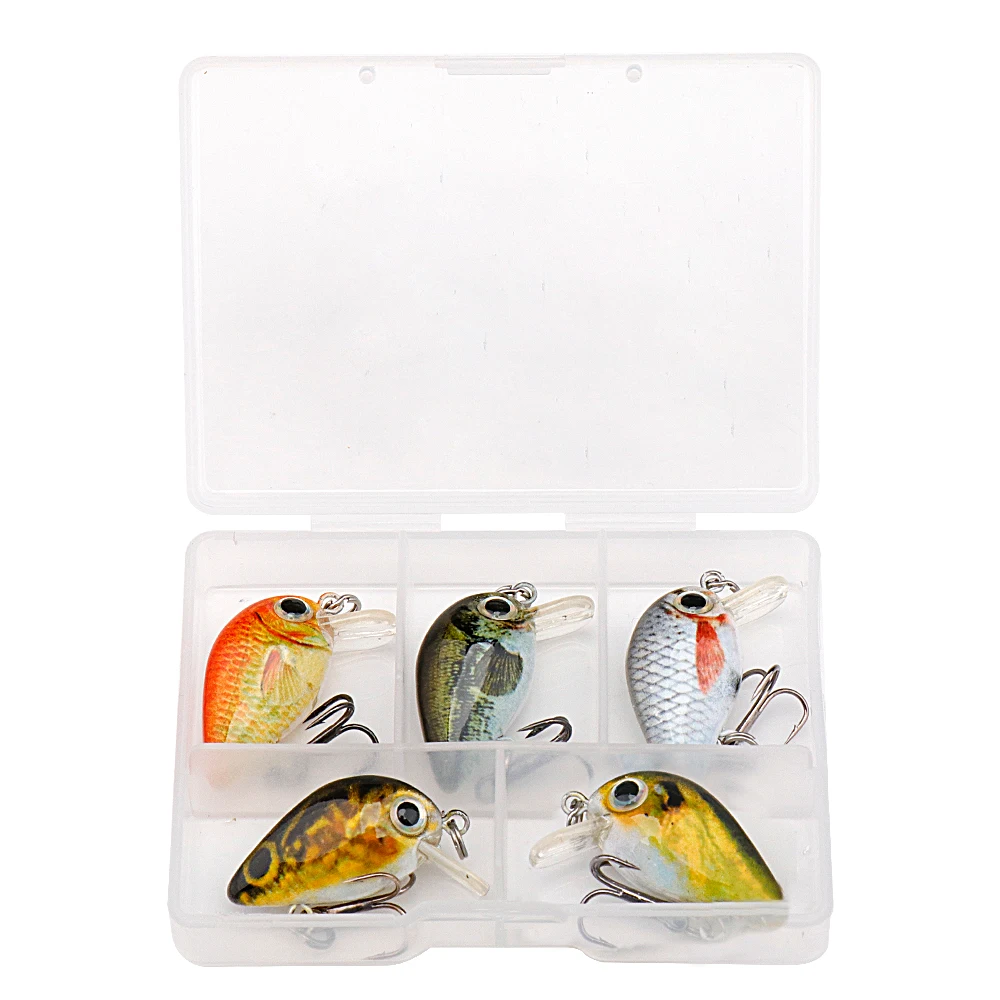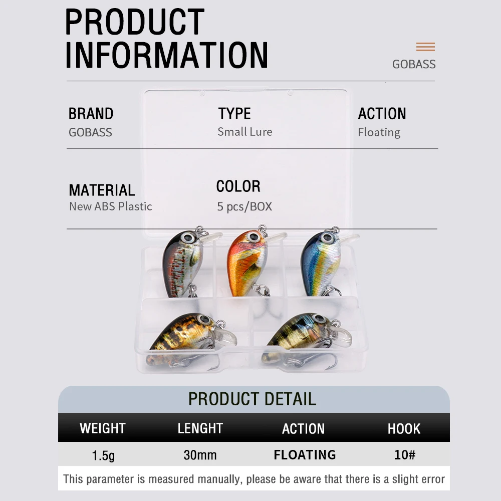 GOBASS 5pcs Mini Fish Bass Fishing Lure Set 3cm 1.5g Mini Artificial Baits Topwater Crank Wobblers For Pike Crankbaits Fishing