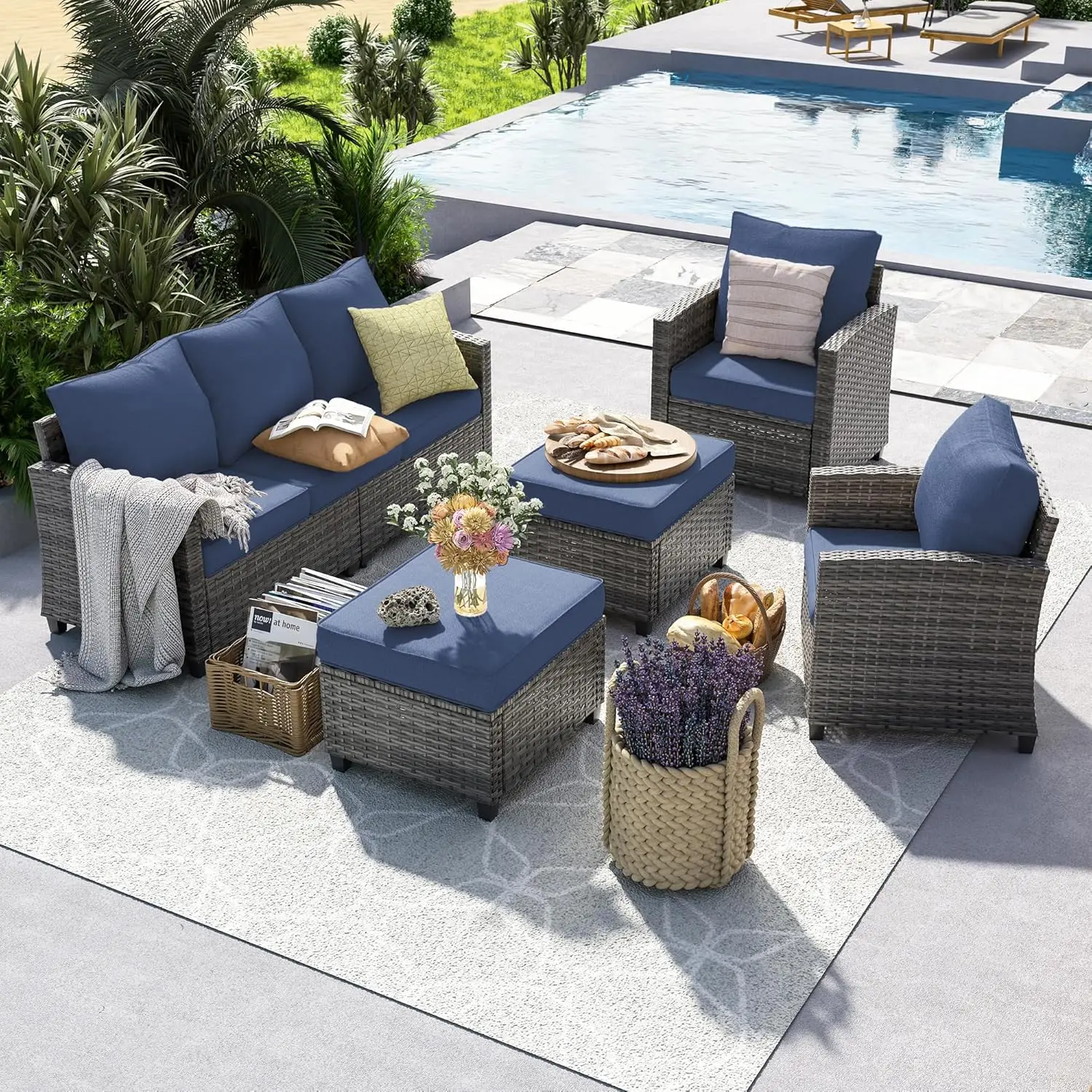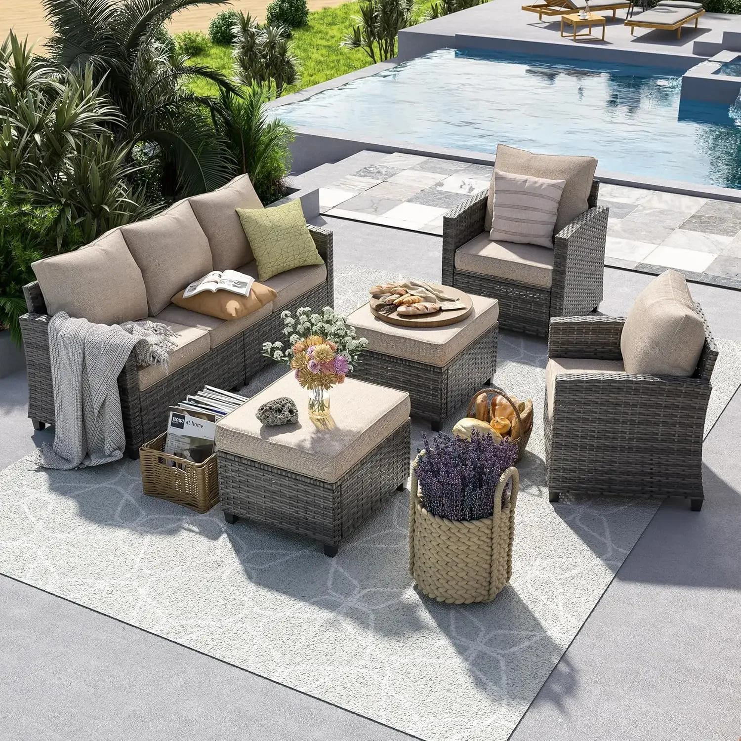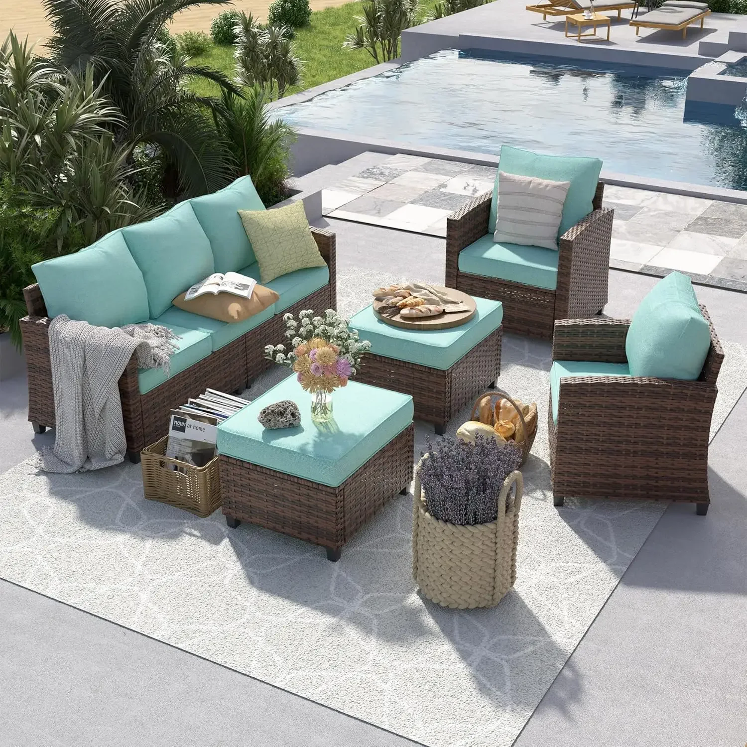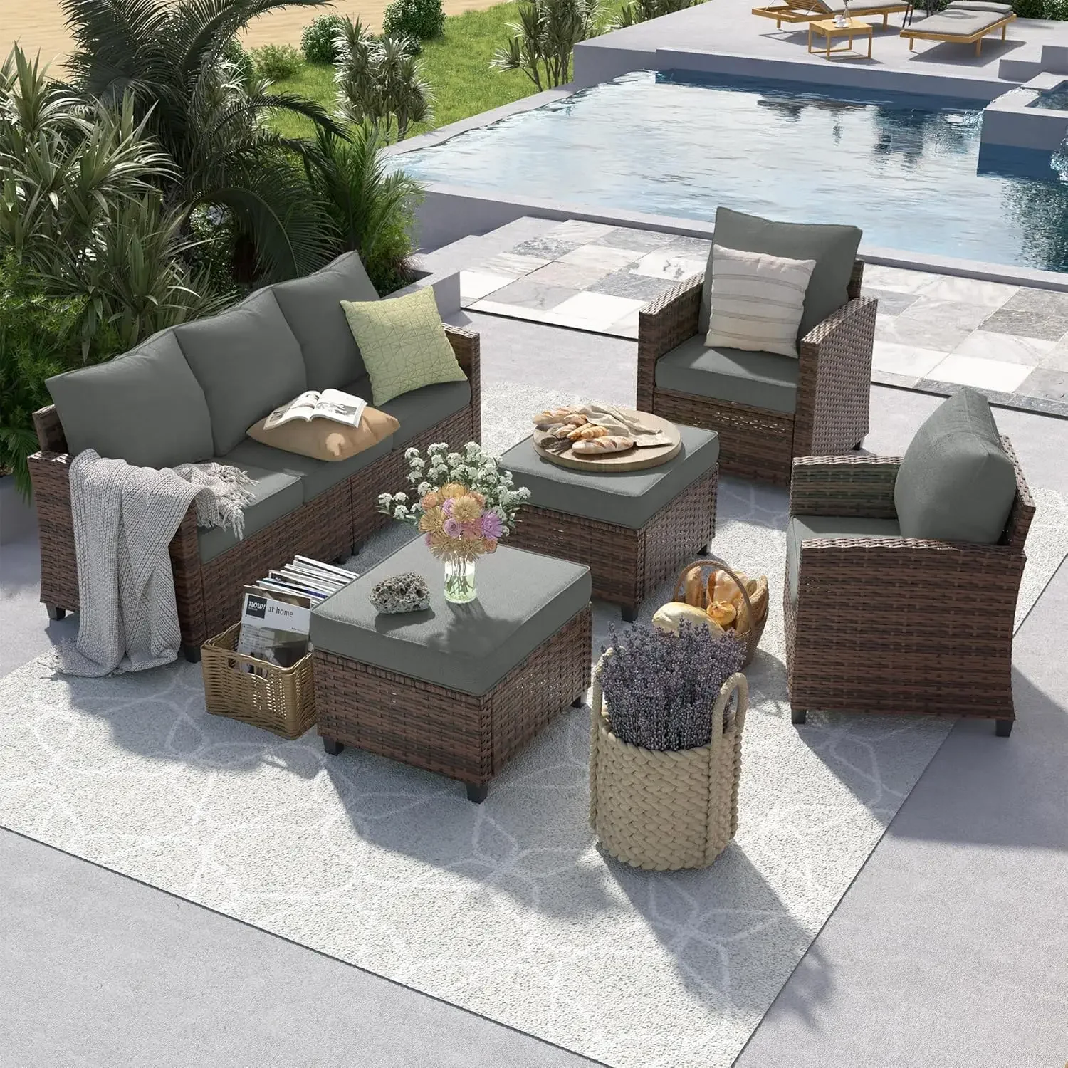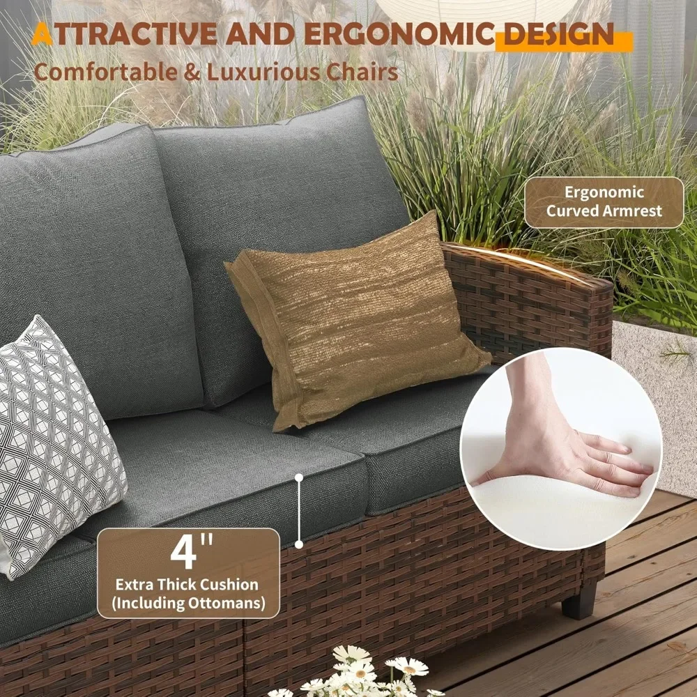 - 【BUILT-TO-LAST MATERIAL】Our patio conversation set features sturdy steel frames and high-quality PE rattan. The robust rust-proof steel frame supports the sofa’s stability and balance. The high-quality PE rattan, with waterproof, heat-resistant, and flexible properties, along with durability and easy maintenance, enables effective adaptation to changes in the outdoor environment. It is suitable for year-round outdoor use.