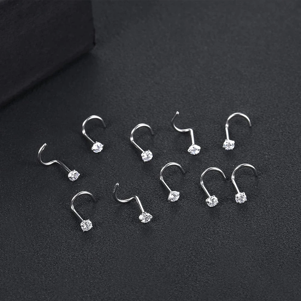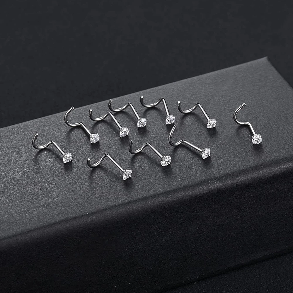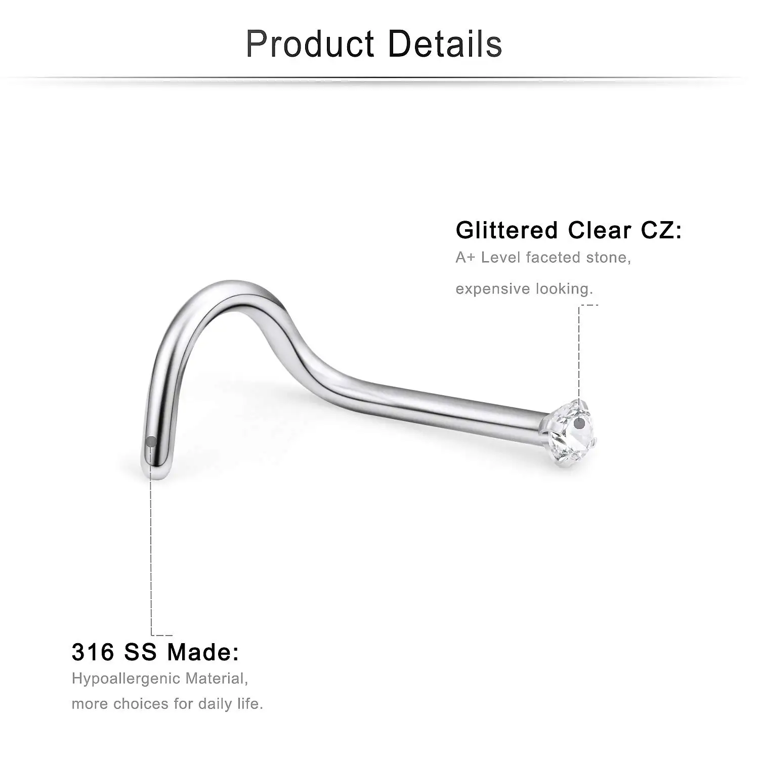 Stainless Steel Nose Rings Stud Set for Women Men Screw Nostril Piercing Jewelry 1.5mm 2mm 2.5mm 3mm Clear CZ Ball Flat