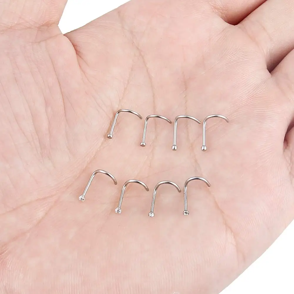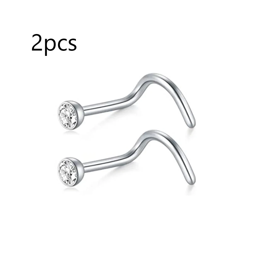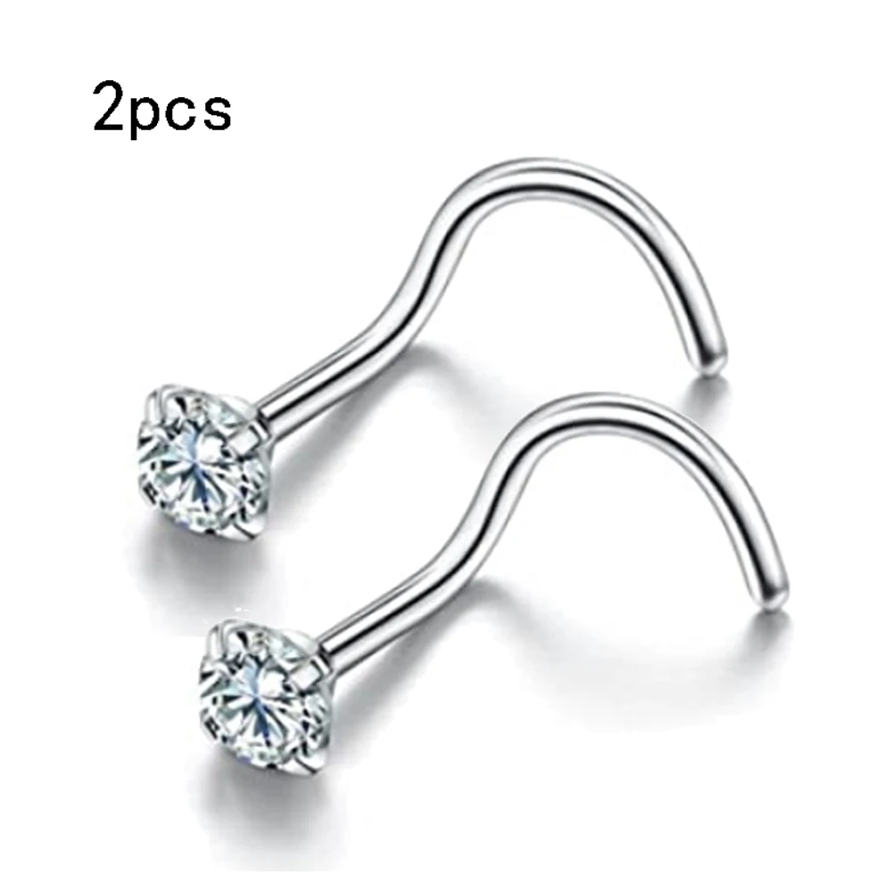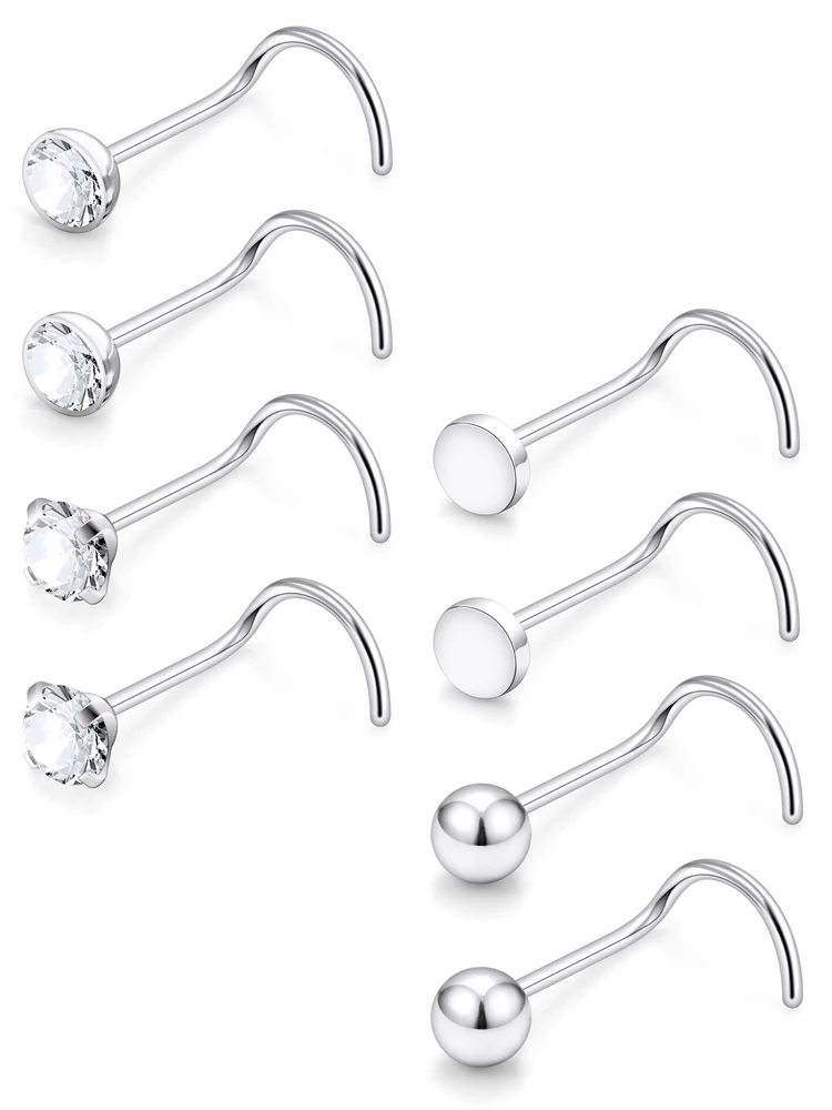 Stainless Steel Nose Rings Stud Set for Women Men Screw Nostril Piercing Jewelry 1.5mm 2mm 2.5mm 3mm Clear CZ Ball Flat