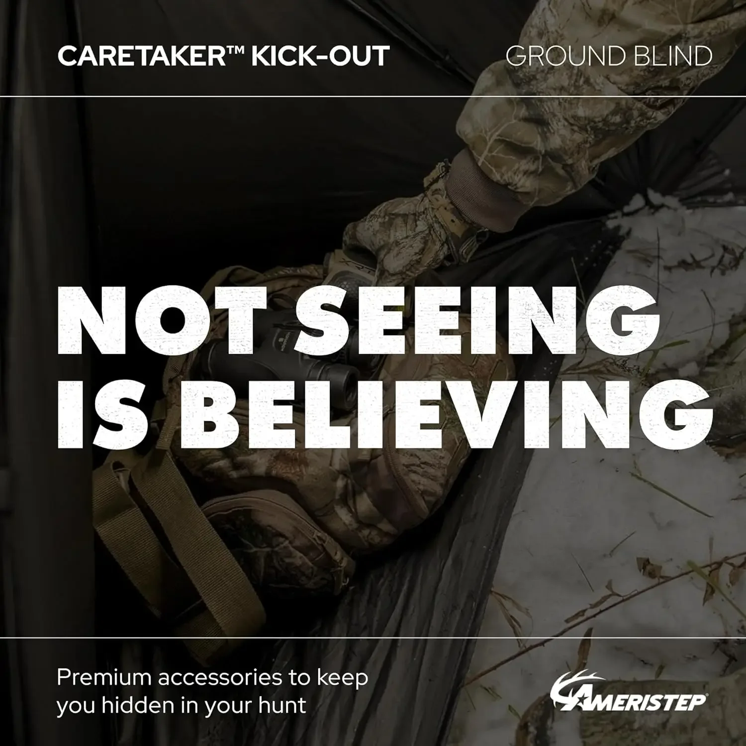 - Caretaker Kick-Out features dual kick-outs that expand floor space to create an impressive 65″ x 65″ footprint perfect for storing extra gear out of the way leaving more space for you to find your shot | Room for two hunters or one hunter with camera gear