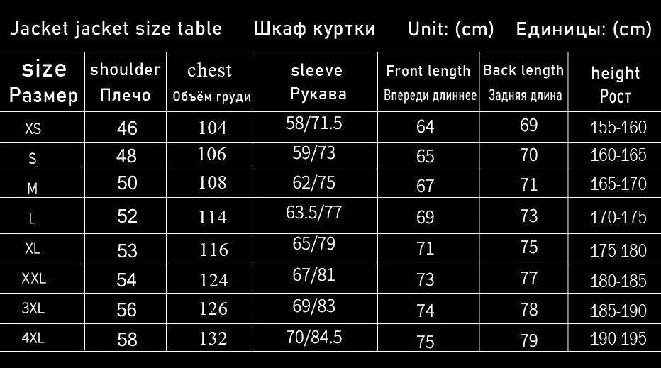 size_info: {“sizeInfoList”:[{“length”:{“cm”:”46″,”inch”:”18.11″},”size”:”XS(Height 155-160cm)”,”vid”:-1},{“length”:{“cm”:”48″,”inch”:”18.90″},”size”:”S(Height 160-165cm)”,”vid”:-2},{“length”:{“cm”:”50″,”inch”:”19.69″},”size”:”M(Height 165-170cm)”,”vid”:-3},{“length”:{“cm”:”52″,”inch”:”20.47″},”size”:”L(Height 170-175cm)”,”vid”:-4},{“length”:{“cm”:”53″,”inch”:”20.87″},”size”:”XL(Height 175-180cm)”,”vid”:-5},{“length”:{“cm”:”54″,”inch”:”21.26″},”size”:”XXL(Height 180-185cm)”,”vid”:-6},{“length”:{“cm”:”56″,”inch”:”22.05″},”size”:”XXXL(Height185-190cm)”,”vid”:-7},{“length”:{“cm”:”58″,”inch”:”22.83″},”size”:”4XL(Height190-195cm)”,”vid”:-8}]}